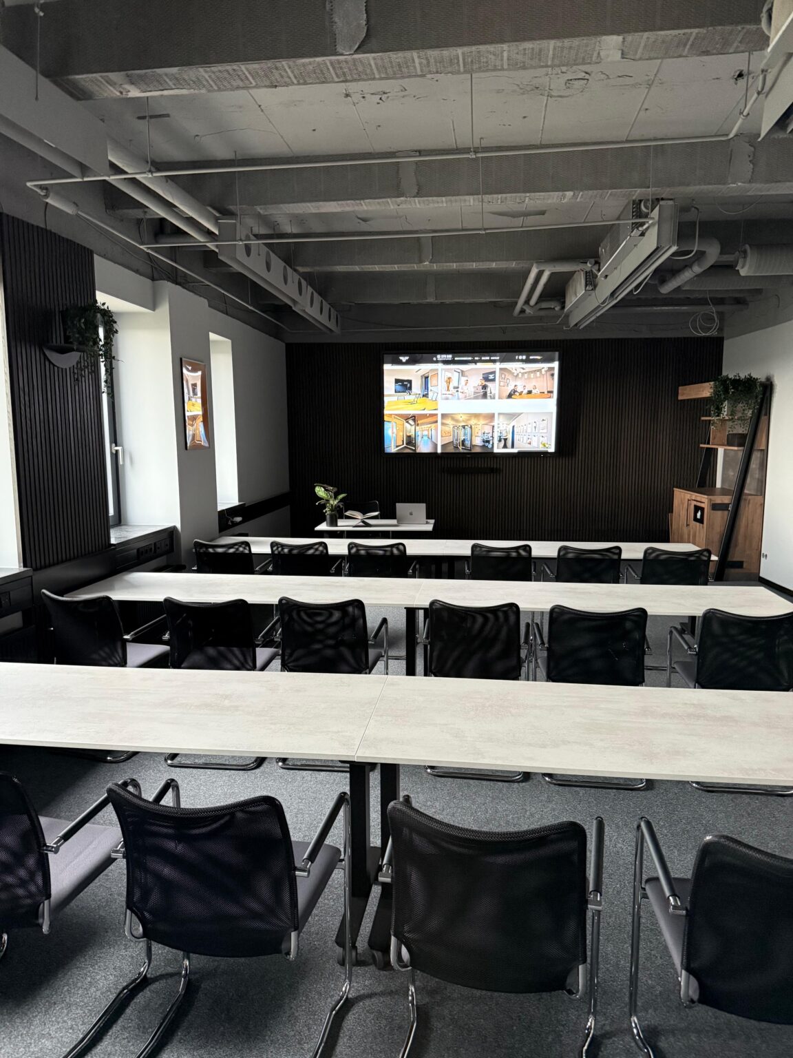 Entdecke unseren neuen, großzügigen Seminar- und Eventraum – die "Workflow Lounge". Mit 100 m² Fläche bietet sie Platz für bis zu 50 Personen und eignet sich ideal für Seminare, Workshops und Events. Die moderne Ausstattung umfasst Klimaanlage, Beamer, High-Speed-WLAN sowie eine Kaffee- & Tee-Flatrate. Optional bieten wir Catering-Services an, um deine Veranstaltung kulinarisch zu bereichern. The Workflow Lounge. Zum 3D Rundgang Entdecken Sie unseren neuen, großzügigen Seminar- und Eventraum – die "Workflow Lounge". Mit 100 m² Fläche bietet sie Platz für bis zu 50 Personen und eignet sich ideal für Seminare, Workshops und Events.